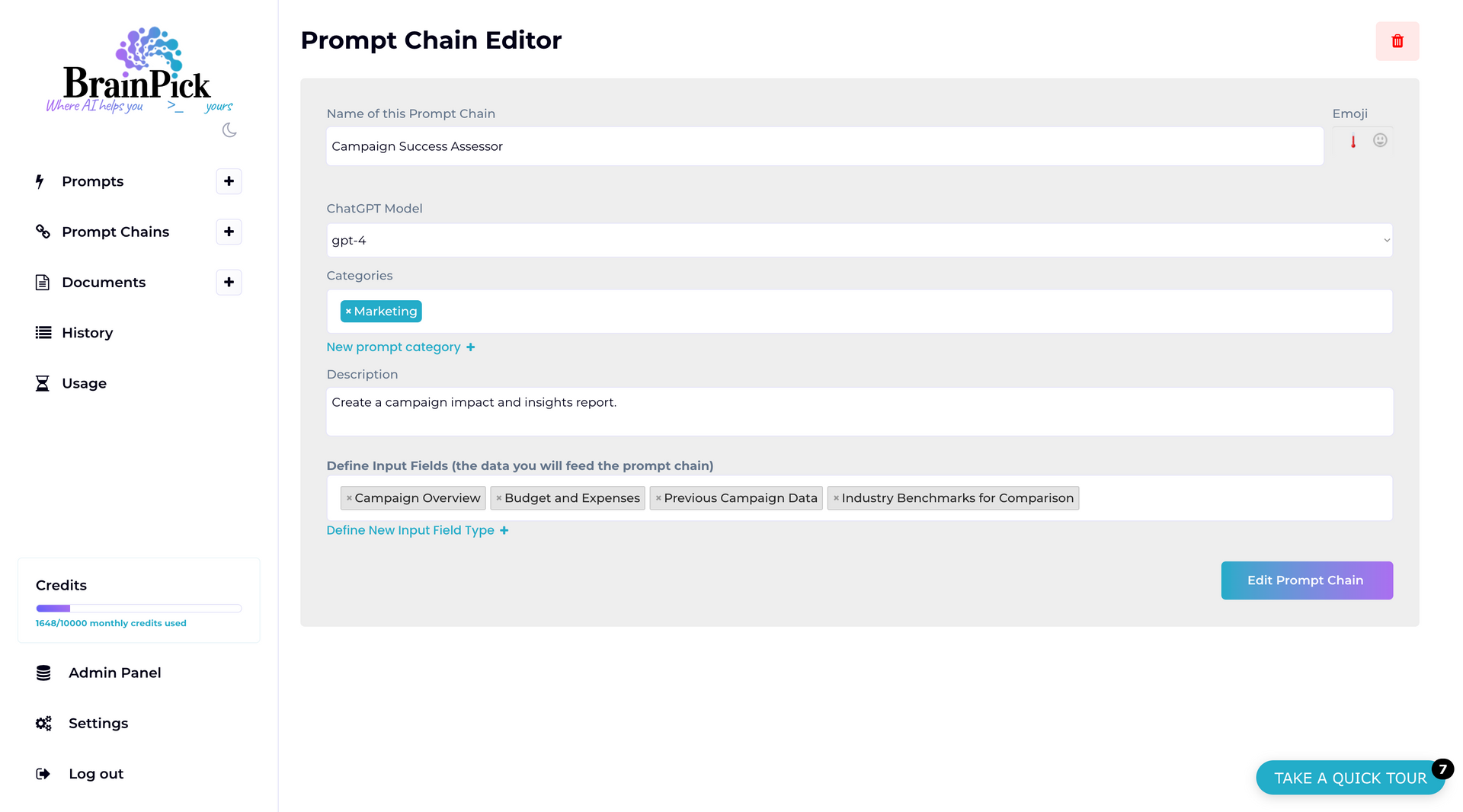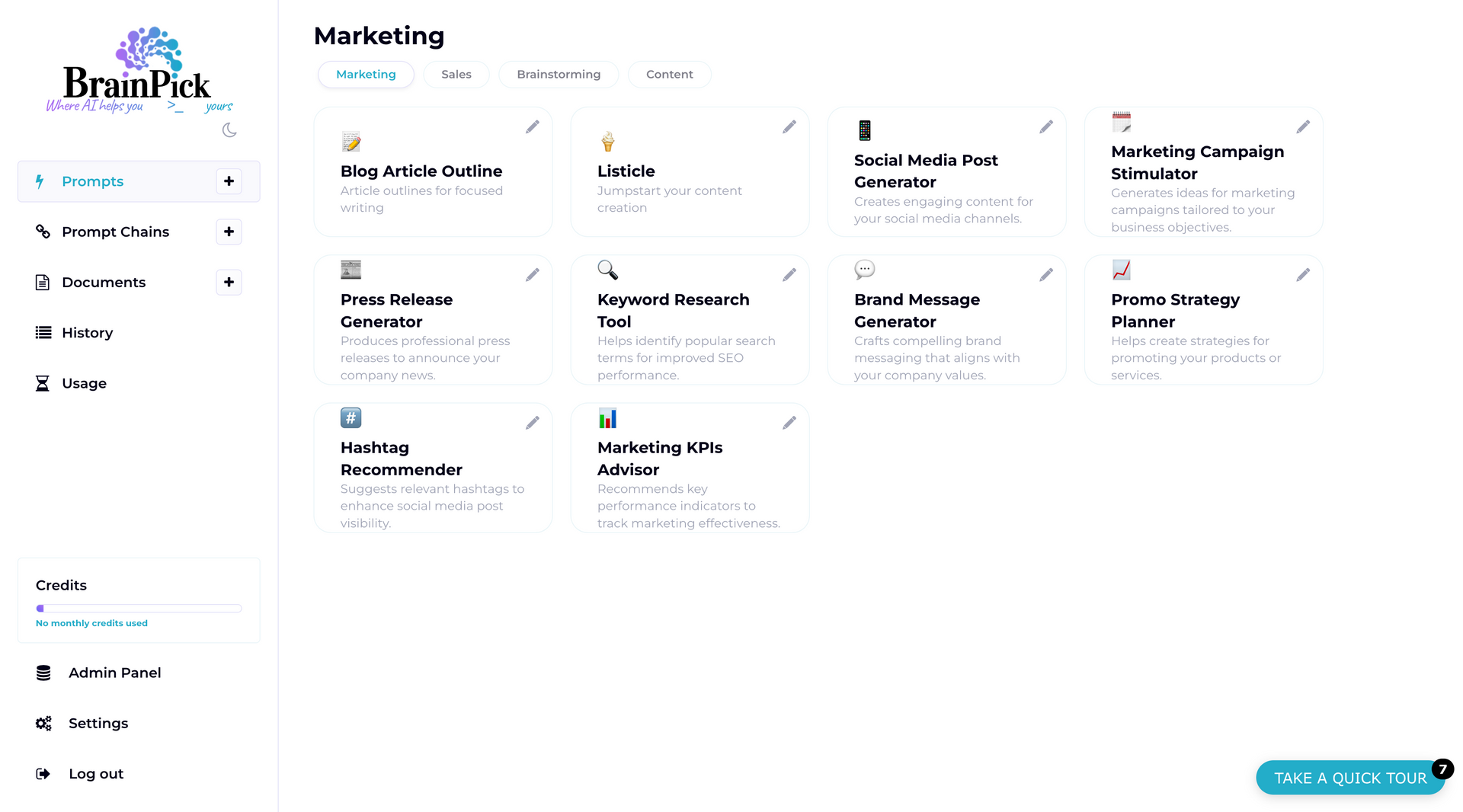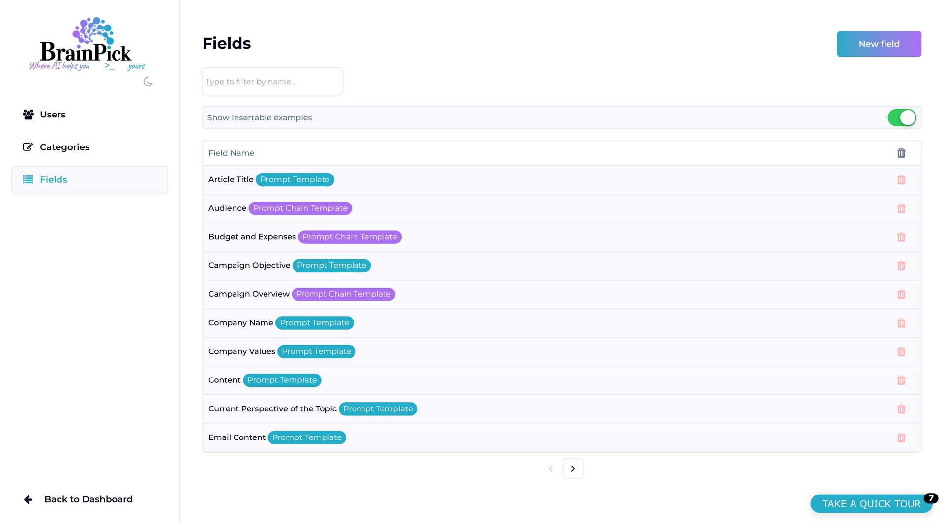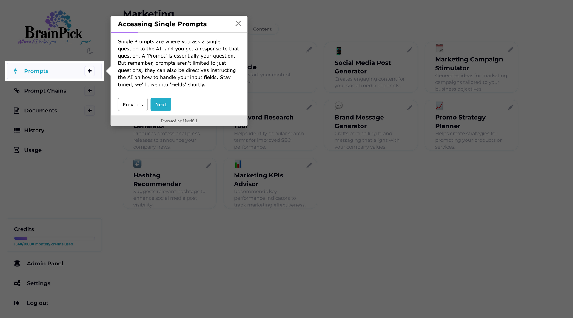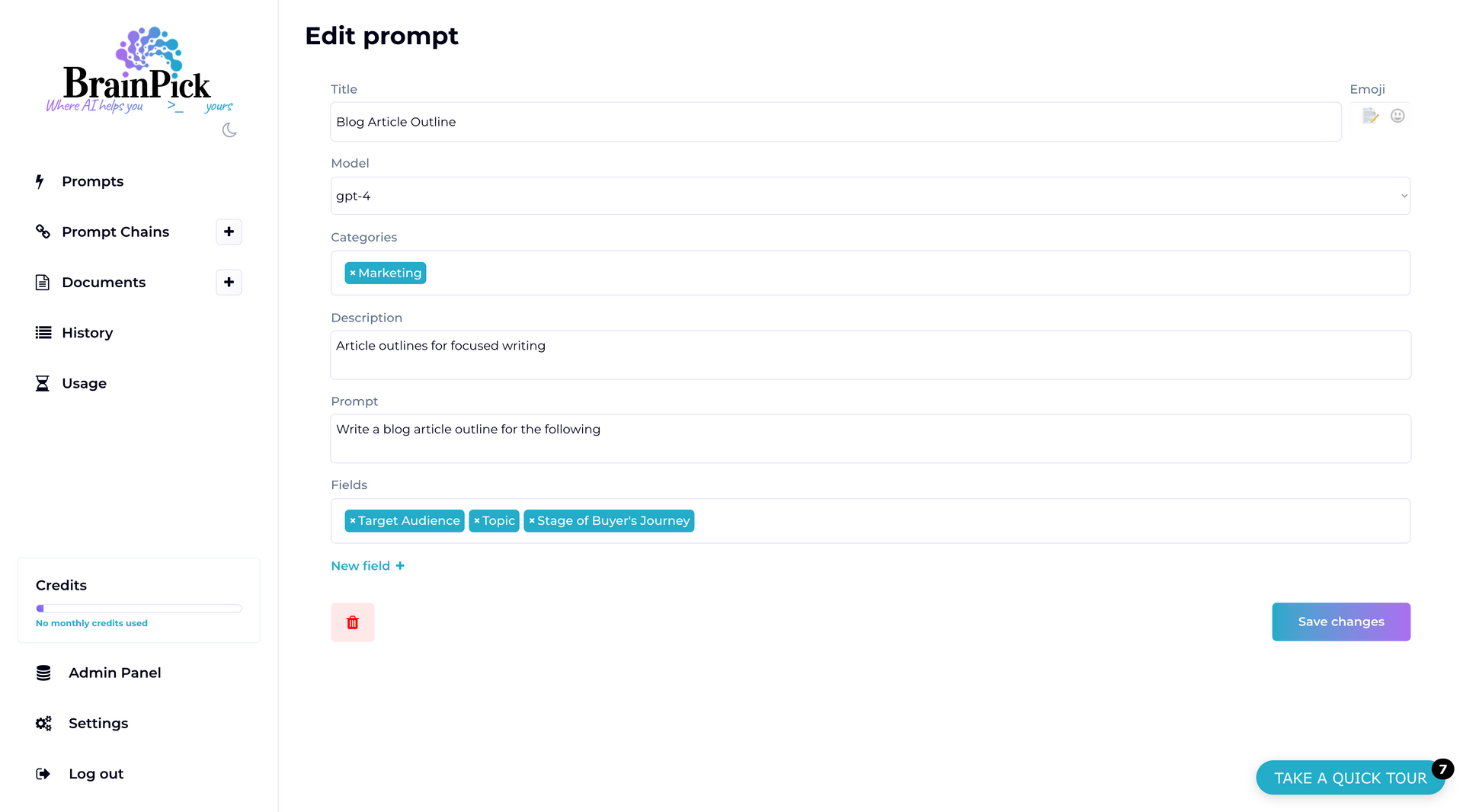 BrainPick provides a dynamic environment that's as adaptable as you are. Feel free to remove redundant fields and edit your prompts whenever necessary to ensure they're always at their best.